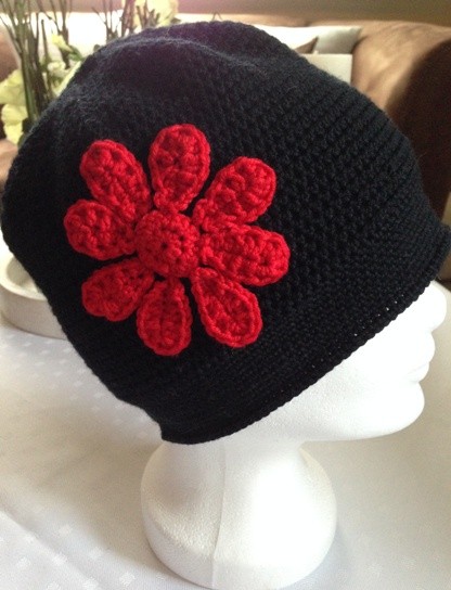 Die Blume habe ich nach dieser Anleitung gehäkelt.