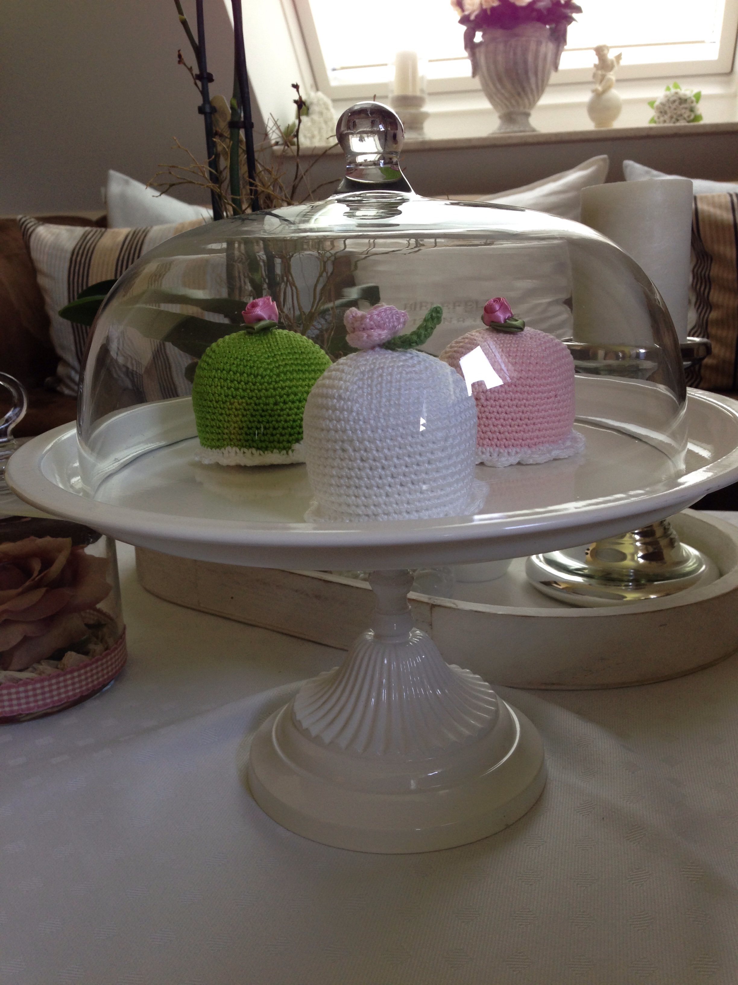 Da ich diesen Kuchen in seiner gehäkelten Variante so schön finde, habe ich mich durch einige schwedische Blogs gelesen, um eine Anleitung zu finden. Einfach war es nicht, aber ich habe hier und da was übernommen und bin mit meinem Ergebnis ganz zufrieden. 😉