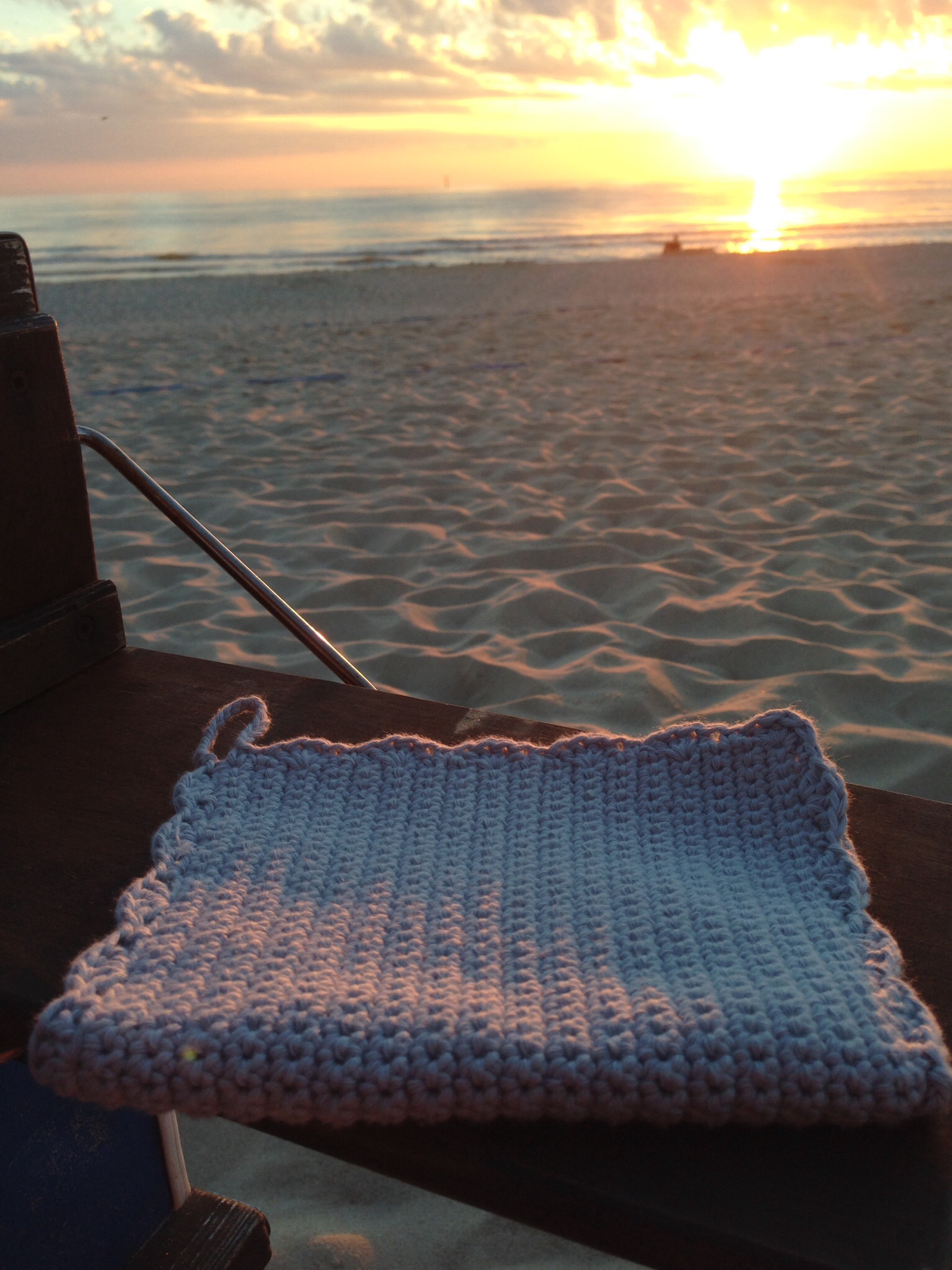 Eigentlich hatte ich mir so einiges vorgenommen für den Urlaub, aber ich war abends immer so kaputt, dass es nur für ein paar Reihen gereicht hat. Und so ist nur ein Gästehandtuch auf der Insel entstanden.