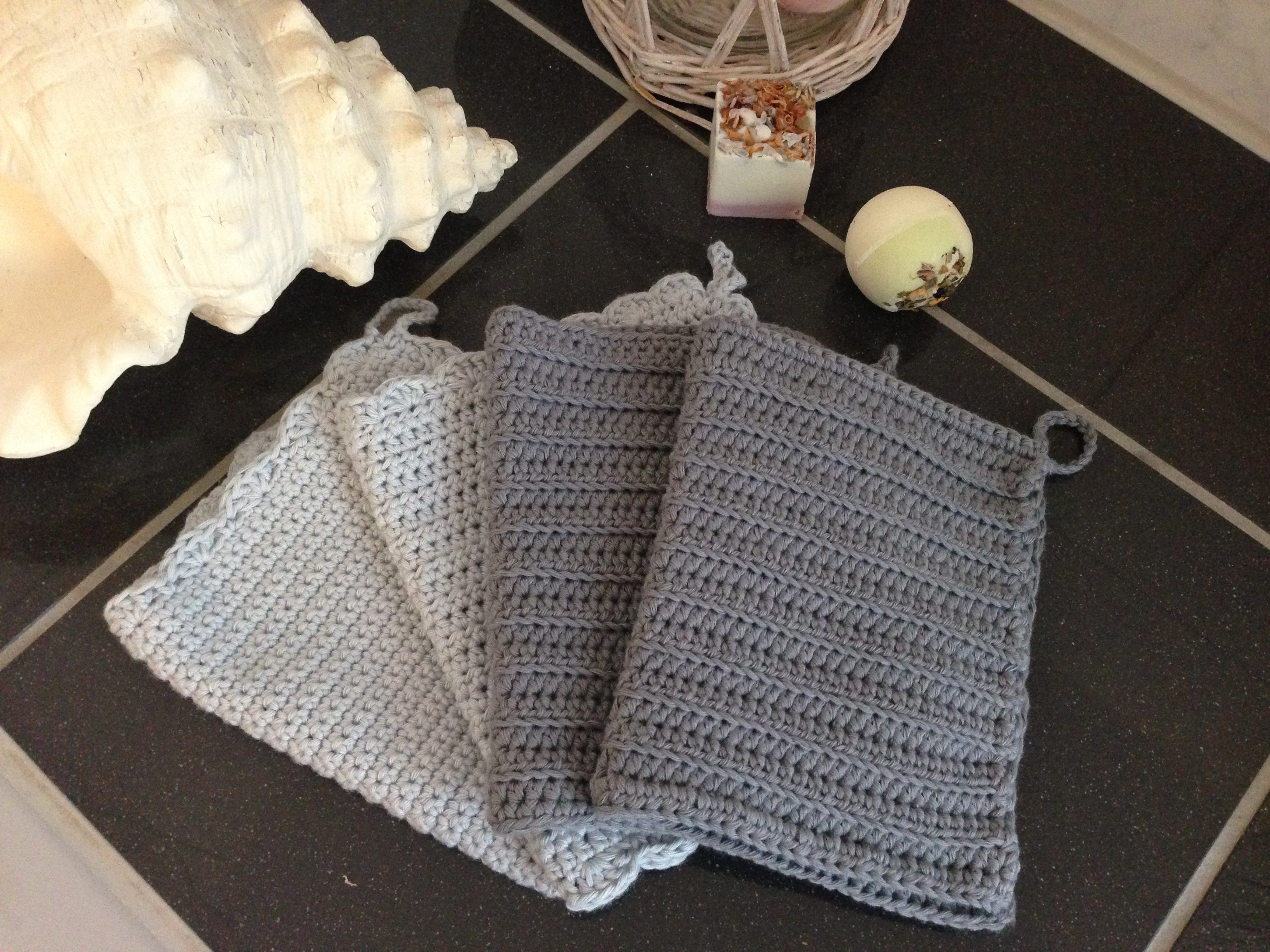 Die Anleitung von Katja von versponnenes.de hat mich sehr angesprochen. Eigentlich wollte ich im Urlaub einige Exemplare davon fertigen. Aber ich war abends so müde, dass es am Ende nur für ein Tüchlein gereicht hat. Zu Hause habe ich mich dann voller Tatendrang an die Arbeit gemacht. Die Handtücher sind wirklich einfach zu häkeln und hüpften recht flott von der Nadel. Das passende Garn hatte ich mir schon vor dem Urlaub zugelegt. Das gibt es auch bei Katja im Online Shop.