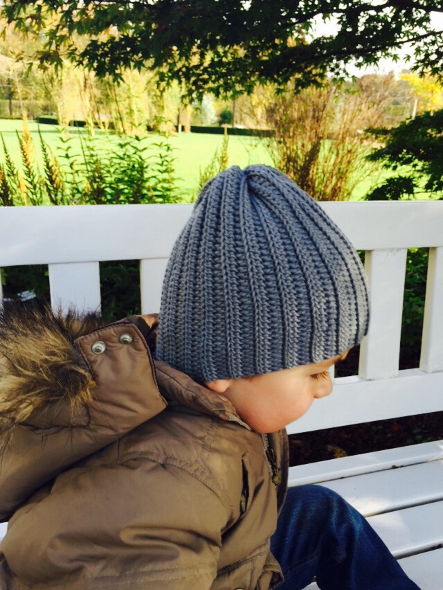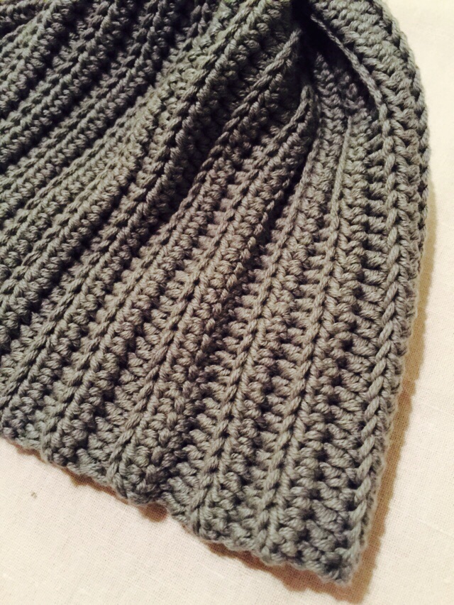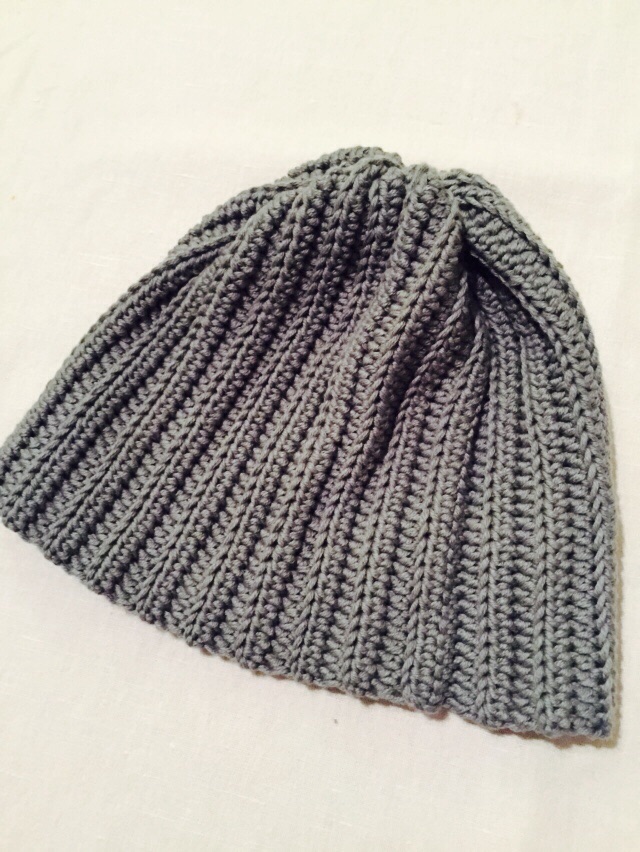Die Machart für die gerippte Mütze hatte ich ja einen Beitrag vorher erklärt. -> LINK zum Beitrag <- Einfach halbe Stäbchen ins hintere Maschenglied häkeln und am Ende eine Seite zusammennähen.