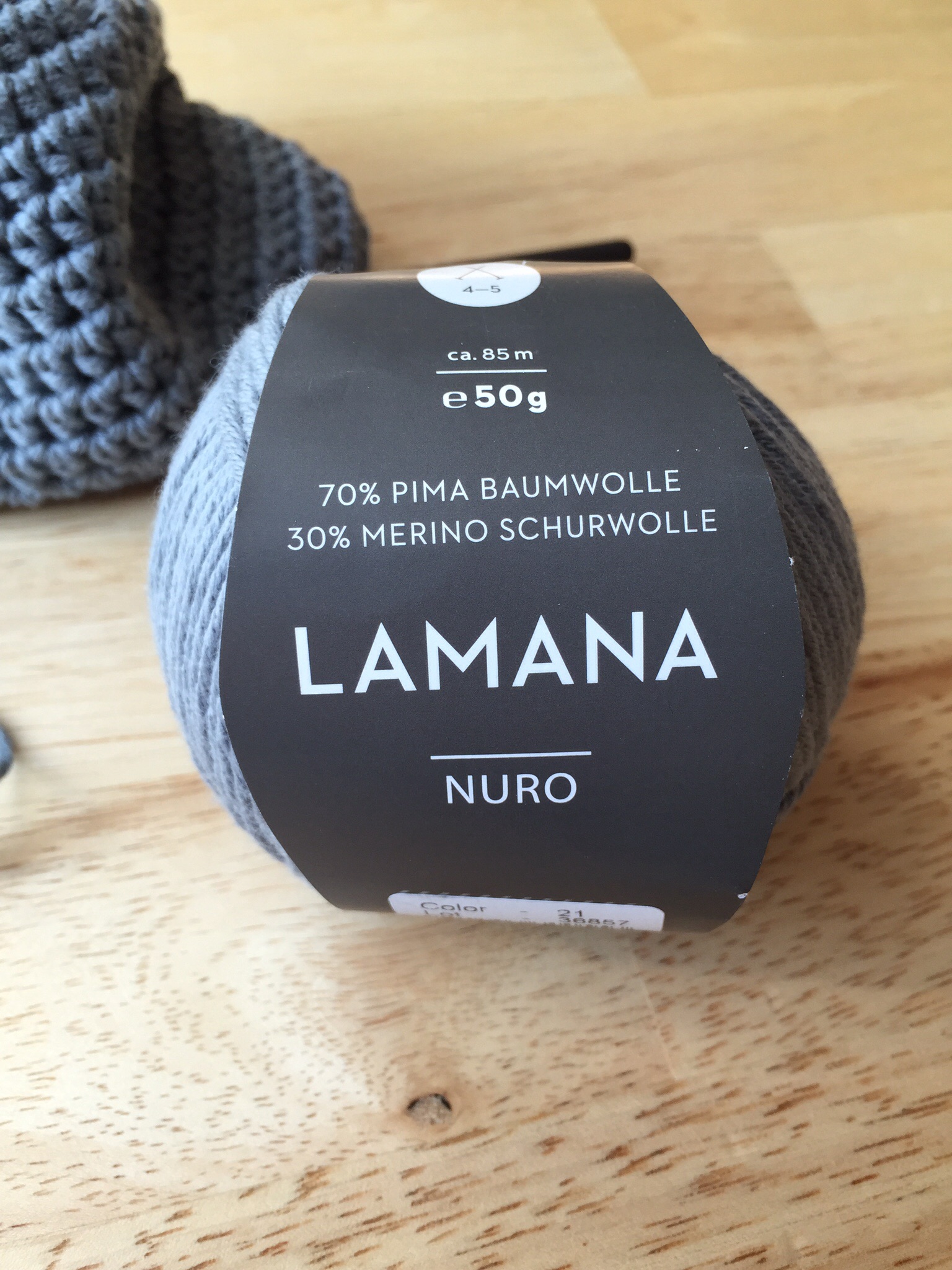 Als Garn habe ich dieses Mal eins von Lamana ausprobiert, und zwar das Nuro. Das Besteht aus 70% Baumwolle und 30% Merino Wolle.