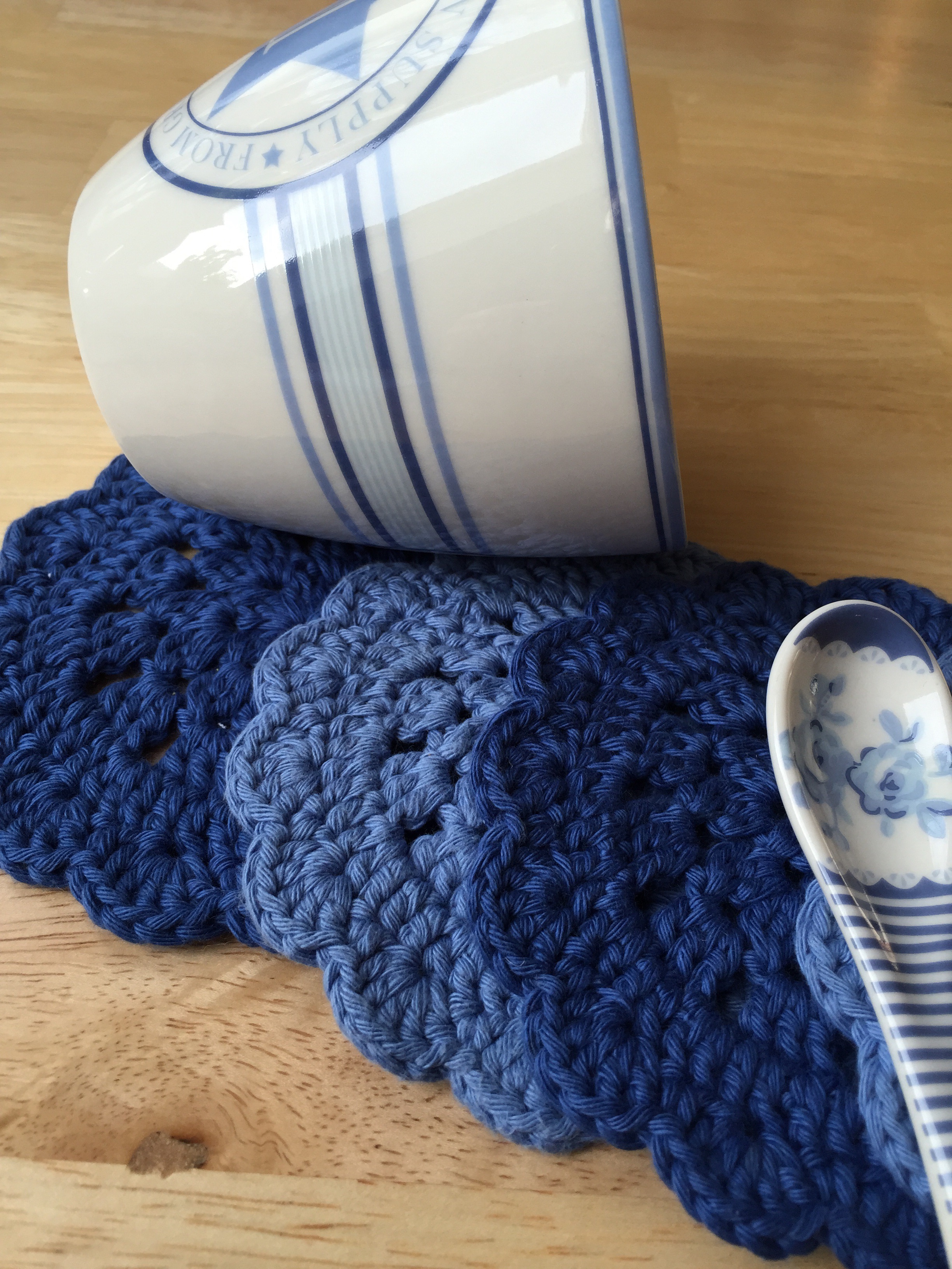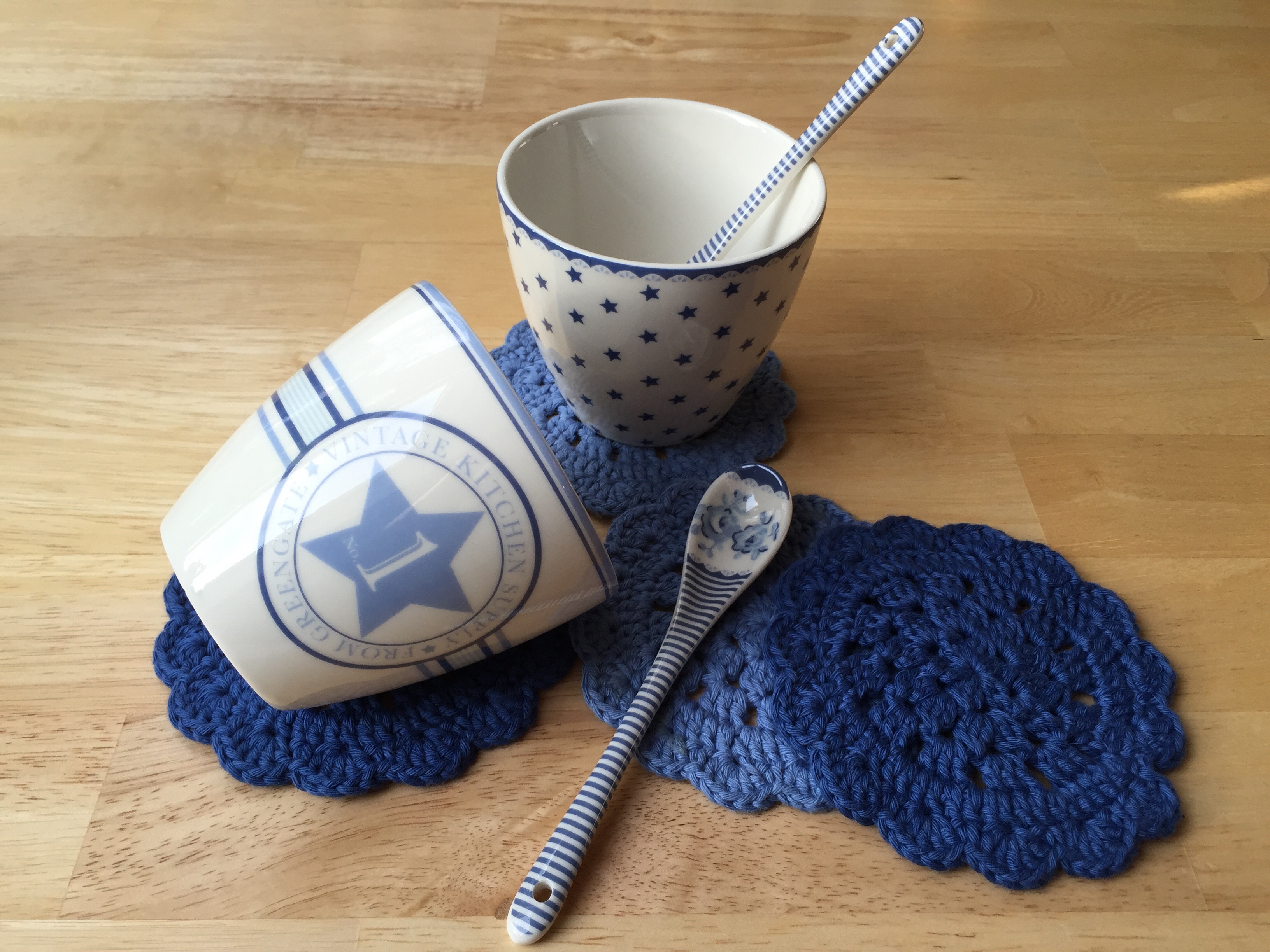 Und das Beste ist: das blau meiner Untersetzer passt genau zu dem blau von den Bechern.