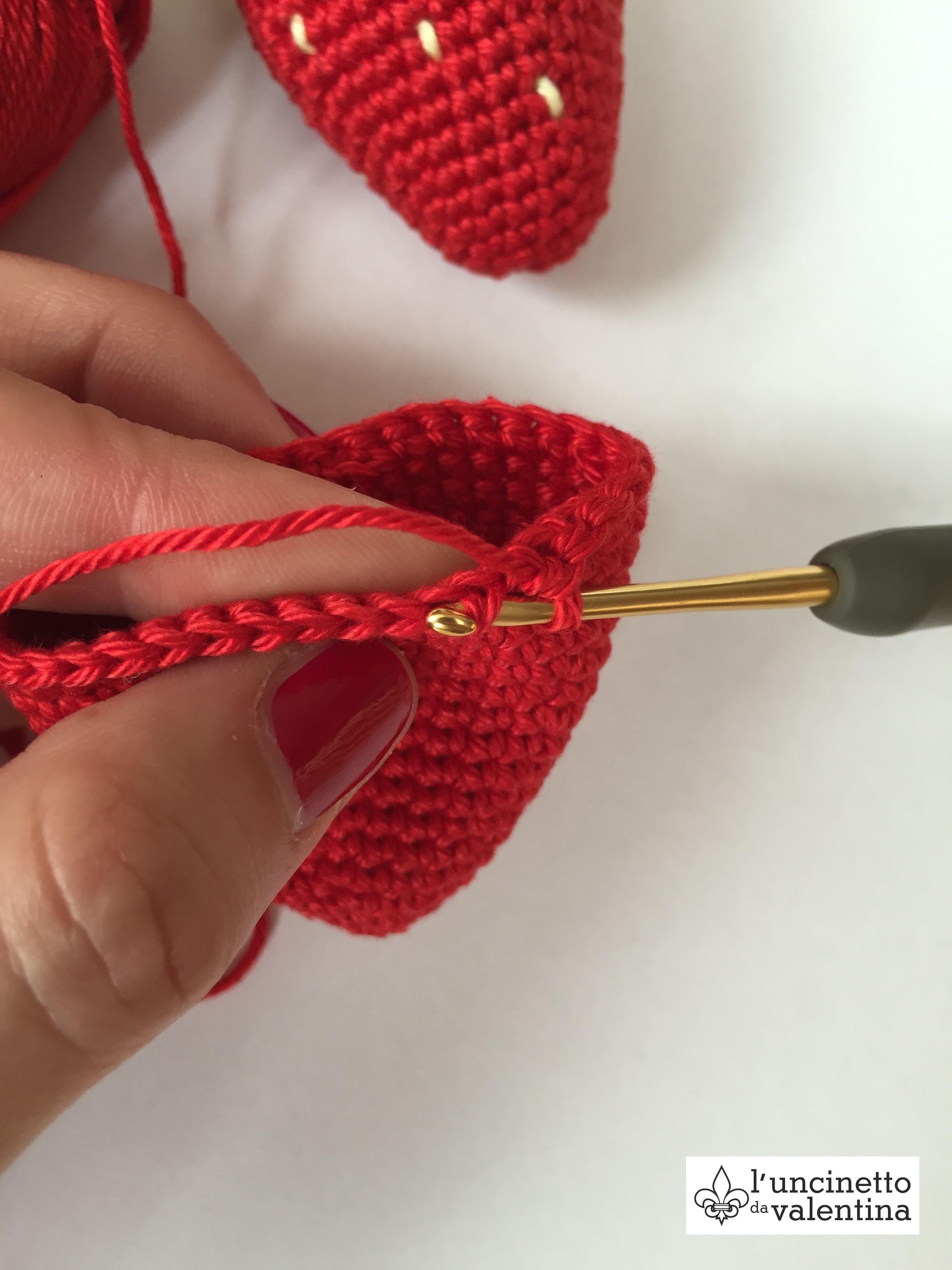 Heute möchte ich euch zeigen, wie man eine leckere Erdbeere häkelt.