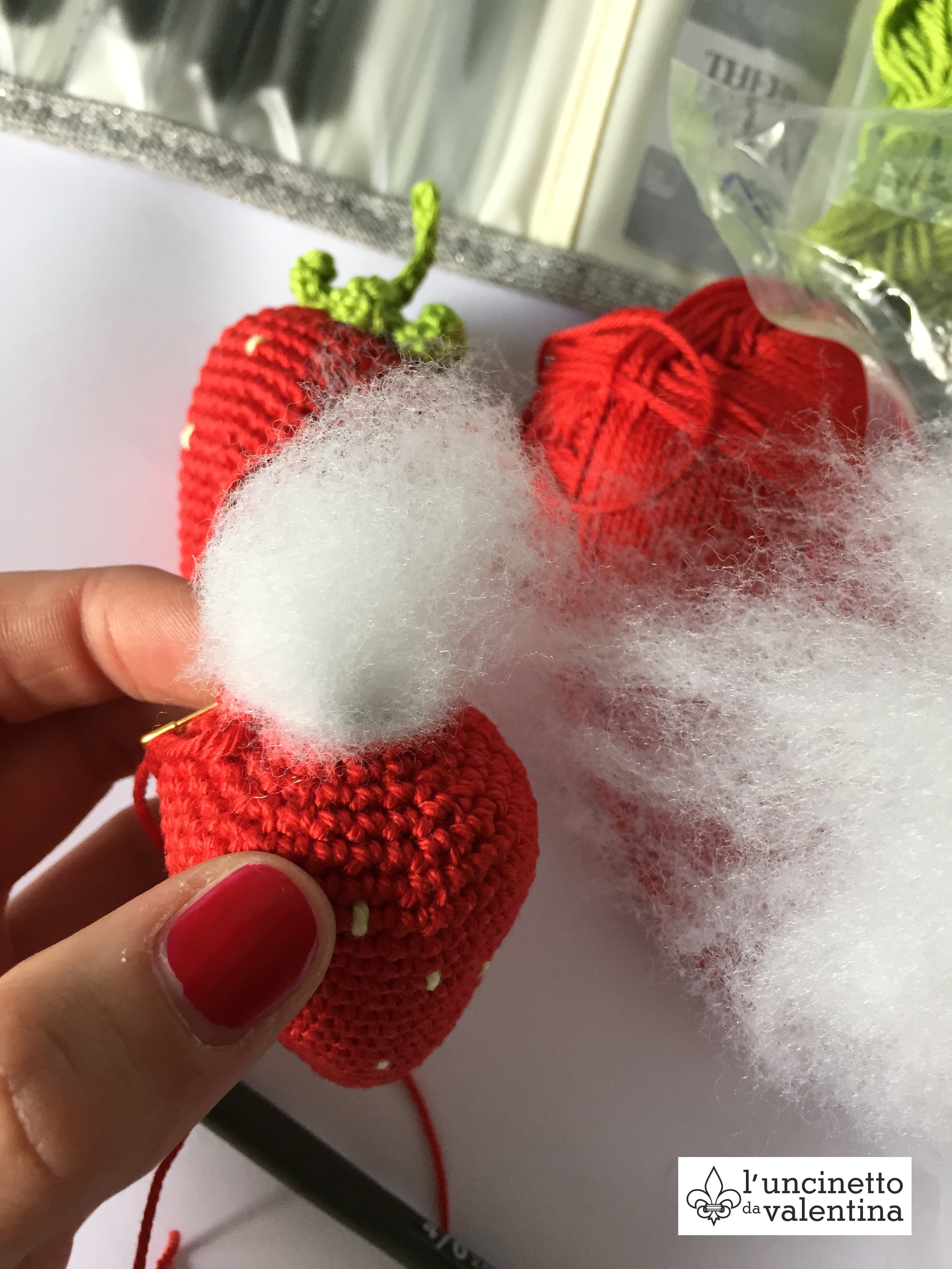 24. Runde: Die Erdbeere schön fest mit Watte füllen