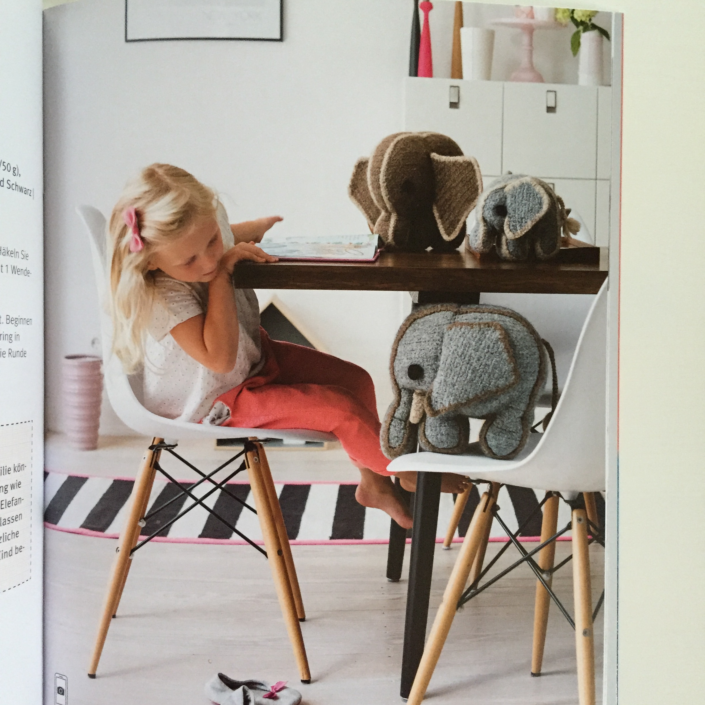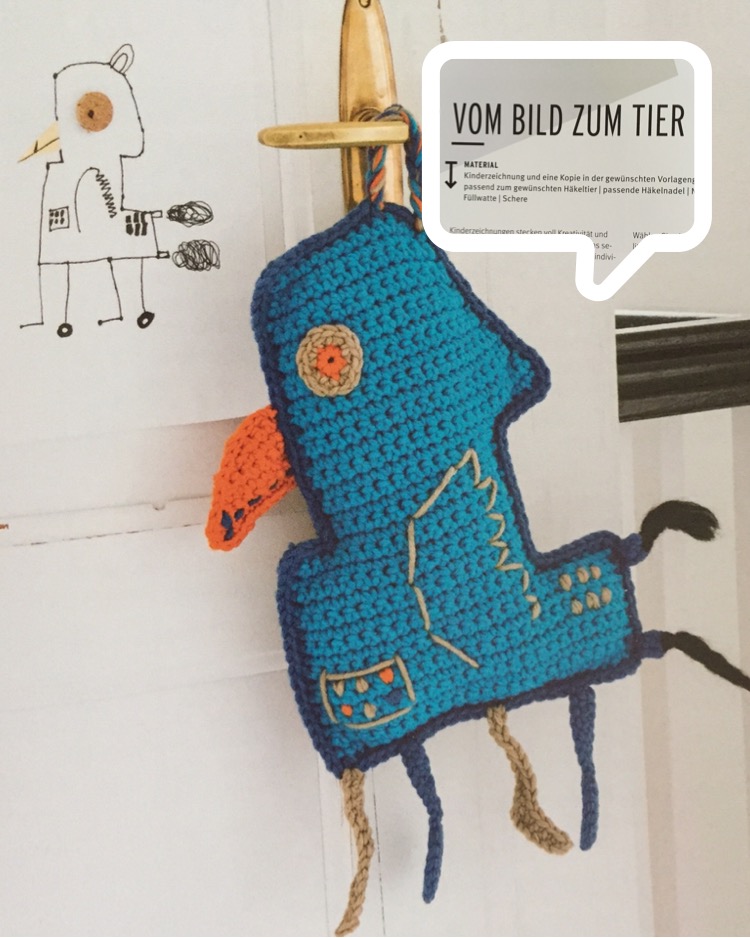 Dieser Teil hat mir am besten gefallen: Vom Bild zum Tier. Da wird erklärt, wie man eine Kinderzeichnung nachhäkeln kann. Das wäre doch mal eine tolle Überraschung für die Kinder.