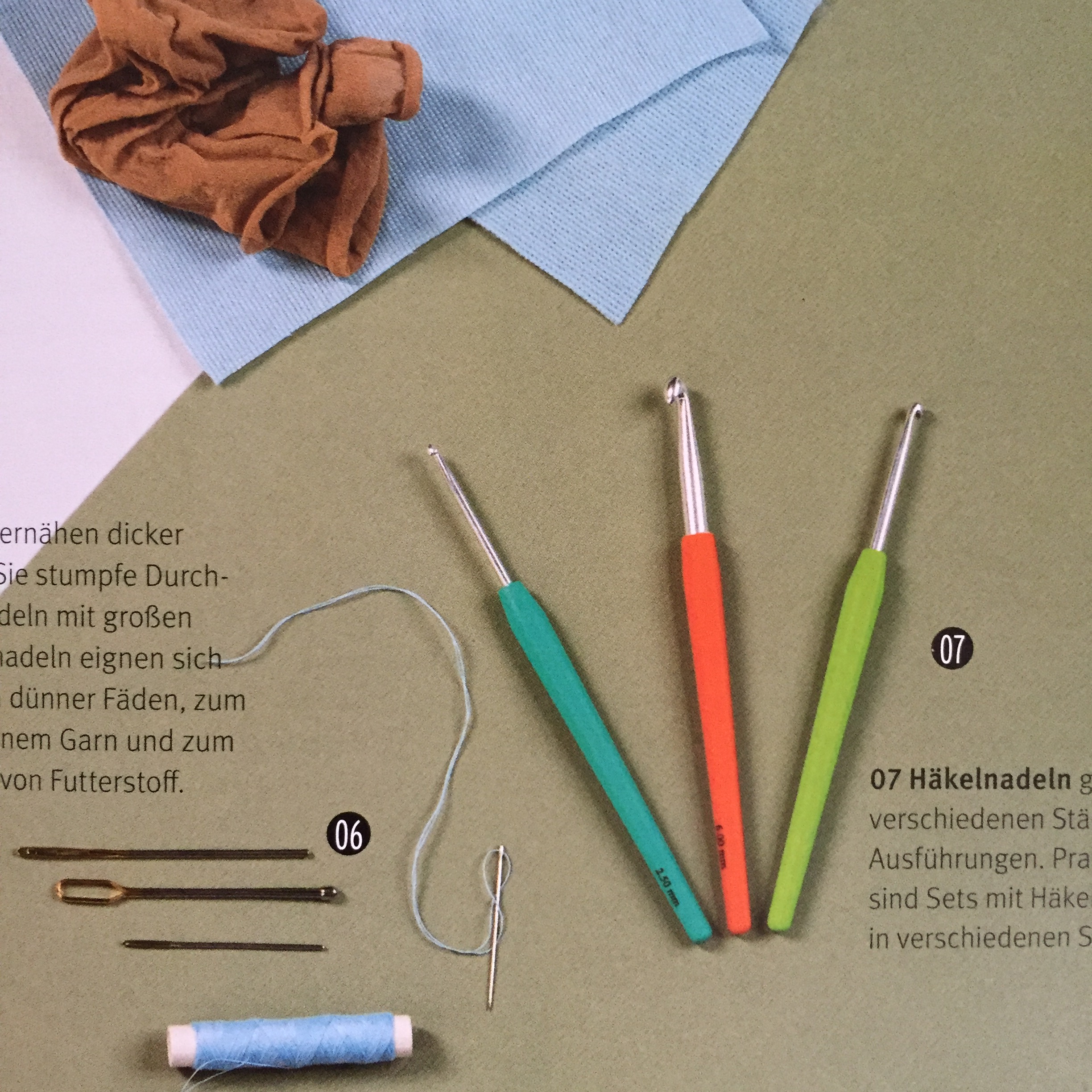 Zuerst kommt die Theorie. Welches Garn brauche ich, welche Nadelstärke, und welche Materialien sonst noch benötigt werden, um die neuen Kuscheltiere zu häkeln.