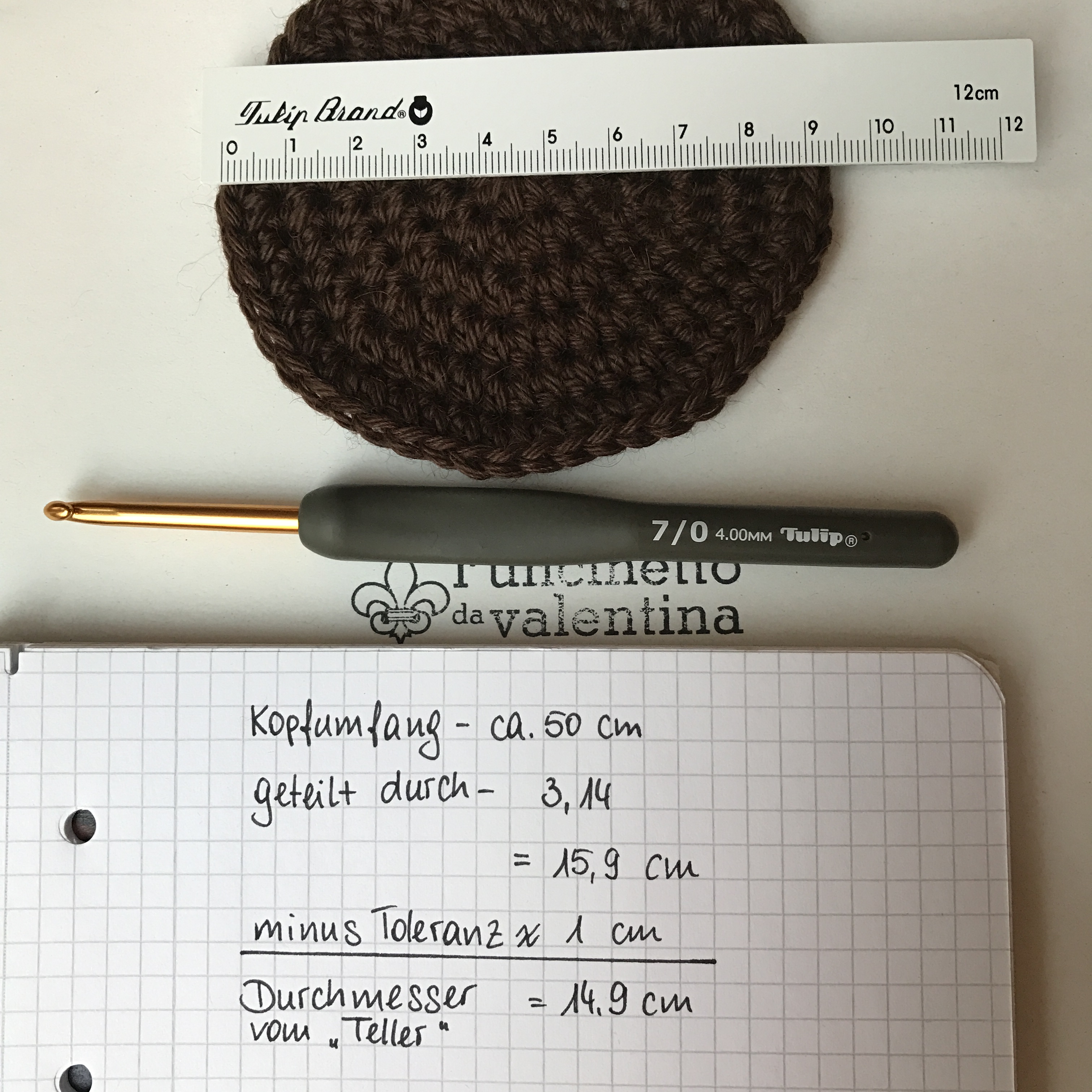 4. das Ergebnis ist nun der benötigte Durchmesser des Mützentellers