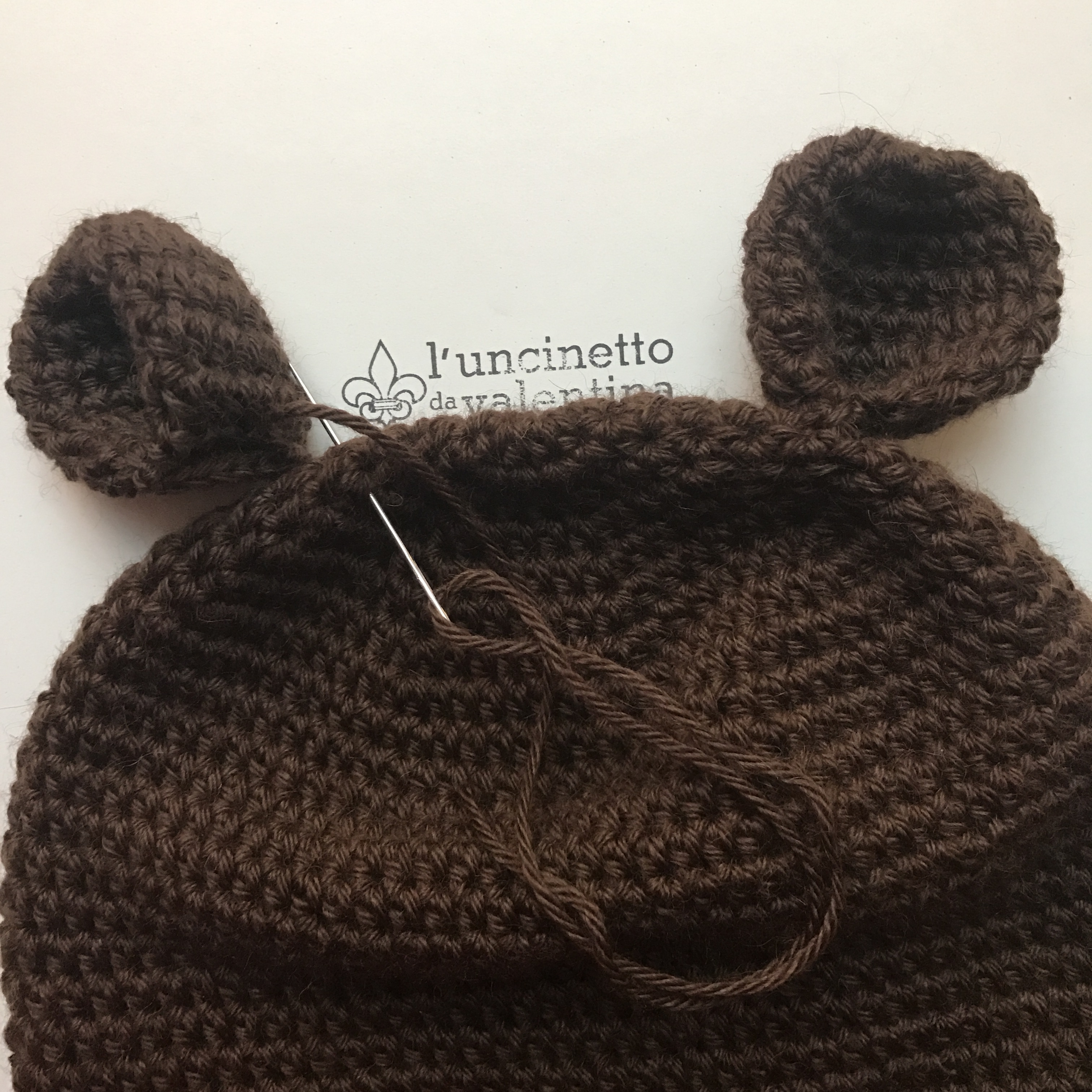 9. Ohren falten und mit festen Maschen zusammenhäkeln