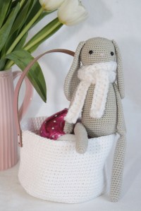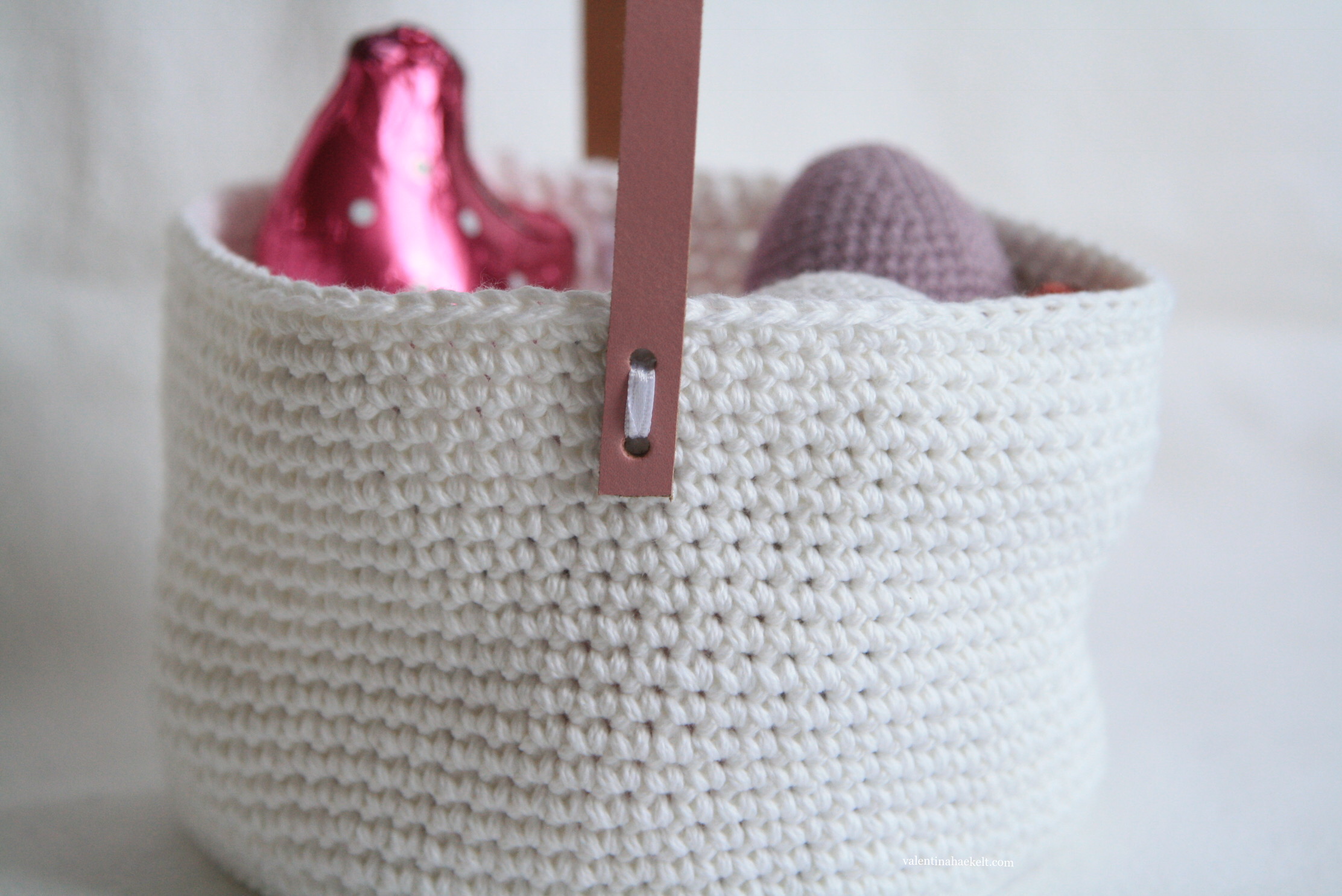 bereitet ihr euch schon fleißig auf Ostern vor? Ich bin da noch etwas nachlässig und habe nichts geplant oder gar dekoriert. Aber laut meiner Statistik sind hier viele schon ab Mitte Januar auf der Suche nach Ideen und Anleitungen gewesen. Was mir bisher fehlte, war ein einfaches Osterkörbchen, das man dekorieren oder zur Eiersuche verwenden kann. Mein Vorrat an Garnen und Material hatte für mich auch genau das passende parat. Ich hatte nämlich noch etwas Lederband und zwei Knäuel weißes Garn über, welches für das Körbchen perfekt geeignet sind.