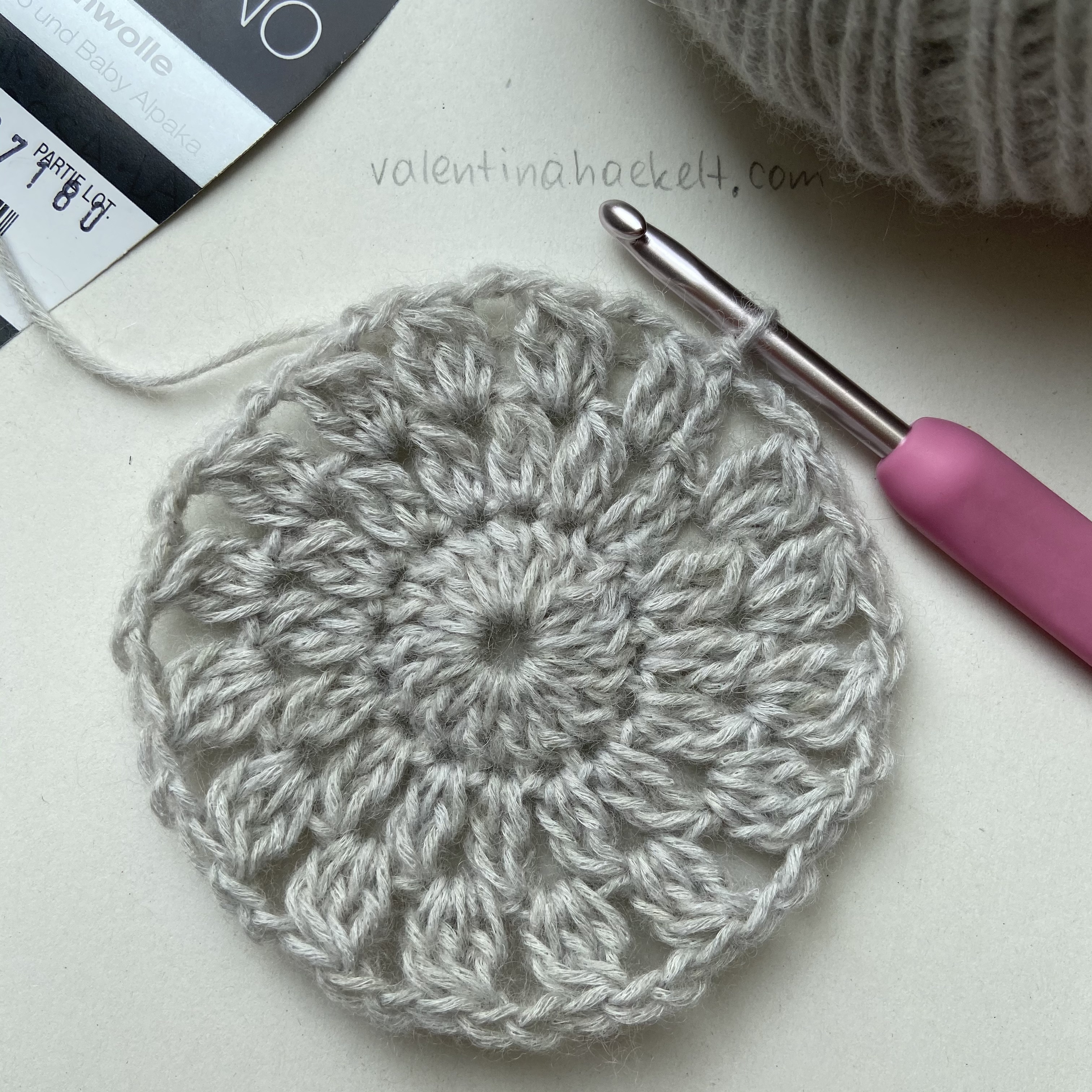 Was die Garnwahl betrifft, darf sich jeder aussuchen, was er mag. Meine verwendete Wolle werde ich weiter unten auflisten. Das Granny lässt sich am besten mit einem Garn häkeln, das für die Nadelstärke 4-5 empfohlen wird. Wer fester häkelt, sollte lieber zu einer Nummer größer greifen, damit das fertige Stück nicht zu fest wird und noch locker fällt. Ich würde hier auch empfehlen, mal ein/zwei Grannys mit verschiedenen Nadelstärken zur Probe zu häkeln.