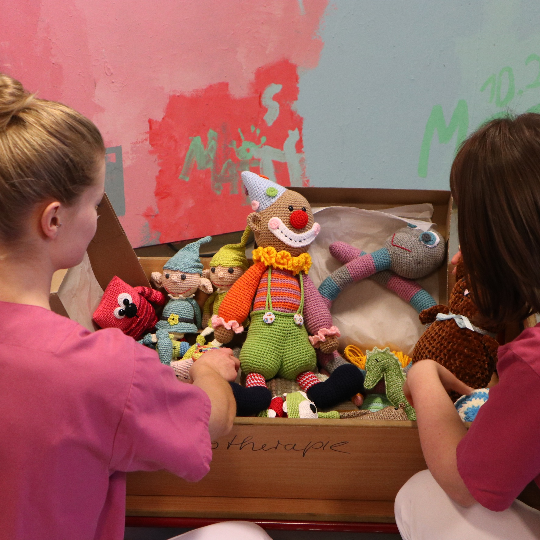 „Guck mal hier, oh, der Hase ist ja süß, guck mal, Batman, oh das behalte ich…“ Es war so toll, dem Ergo-Team zuzugucken. Ich stand die ganze Zeit grinsend daneben und habe mich einfach nur gefreut. Es war einfach nur schön. Das Gefühl wurde gesteigert, als zwei Kinder hinzugerufen wurden, die sich gleich was aussuchen durften. Diese kleinen Gesichter waren zu entzückend. Meine Empfindungen dabei kann ich schlecht in Worte fassen. Das muss man miterlebt haben. Wir haben versucht einen kleinen Moment im Bild festzuhalten. Das soll auch als Beweis dienen, dass eure Arbeit auch wirklich ankommt, wie ich es angekündigt habe.